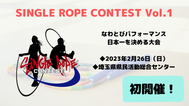 株式会社JUMPLIFE(代表取締役社長:黒野寛馬、所在地:大阪府豊中市)は、『SINGLE ROPE CONTEST Vol.1』を埼玉県県民活動総合センターにて2023年2月26日(日)に開催します。本イベントはなわとびを使ったパフォーマンスを行い、1人での参加やグループでの参加など自由に演技ができる大会です。全国からなわとび好きが集まる1回目の大会であり、このイベントをきっかけに”なわとび”の新たな可能性を広げていきます。URL:https://jumplife.co.jp/