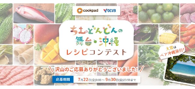 この取り組みの一環として、クックパッド株式会社(本社:神奈川県横浜市、代表執行役:岩田林平、以下クックパッド)が運営する料理レシピ投稿・検索サービス「クックパッド」とコラボし、沖縄食材を使ったレシピコンテストを開催いたしましたので審査結果を発表いたします。