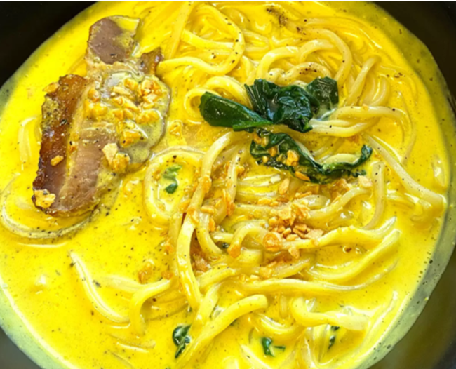 カルボナーラをカレー味にアレンジし、さらに沖縄の食材を組み合わせて工夫されています。「沖縄そば」だけでなく、「黒糖」「泡盛」「コーレーグース」を調味料として使っているのに沖縄愛を感じました!