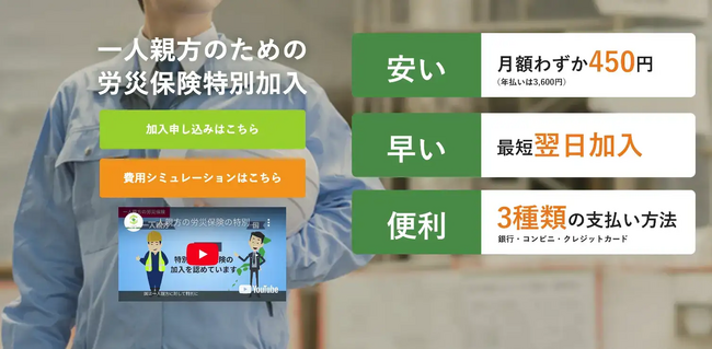 最短翌日加入できる最安の労災保険です。労災保険の特別加入をご検討されている方は、下記のお申込みボタンからお申し込みをお待ちしております。