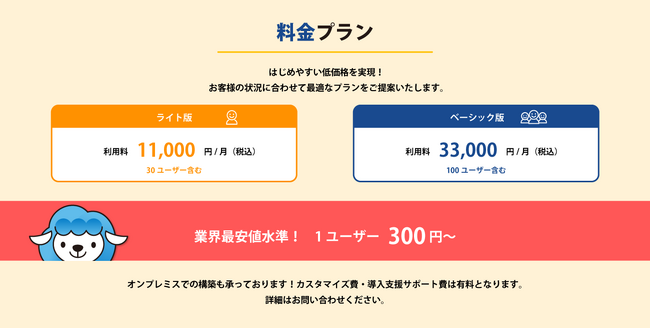 \業界最安水準!1ユーザー300円〜/