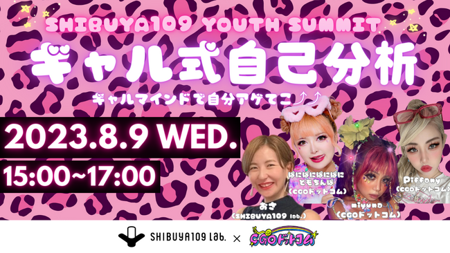 2023年8月、CGOドットコム(総長:バブリー)は、株式会社SHIBUYA109エンタテイメントが運営する「SHIBUYA109 lab.」と合同で、Z世代の自己分析に関する悩みを解消し、自己肯定感をアゲるきっかけをつくるイベント「SHIBUYA109 YOUTH SUMMIT ギャル式自己分析」を開催いたしました。