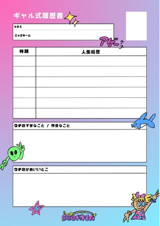 まずは、自分アピールタイム。「ギャル式履歴書」を作成し、写真(一番盛れてる写真/プリ)、名前、好きなこと/得意なことをチーム内で共有しました。