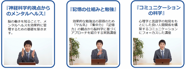実践講座?「神経科学的視点からのメンタルヘルス」「記憶の仕組みと勉強」「 コミュニケーションの科学 」