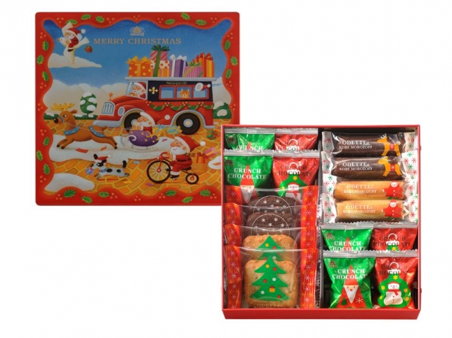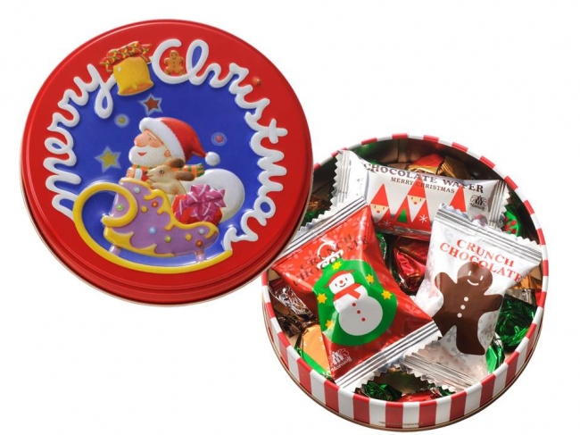 いろいろなお味をお楽しみいただける、ボリュームたっぷりのチョコレートの詰合せです。かわいいクリスマスのイラスト缶は価格によって異なり、クリスマスギフトにぴったりです。
