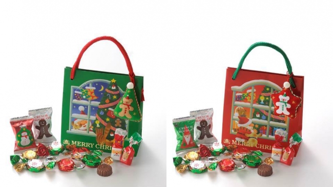 クランチチョコレート&ミルクチョコレート(赤)、ミルクチョコレート(緑)、チョコレートウェハース&ミルクチョコレート(白)の3種類。3袋まとめて購入で1,080円(税込)になります。