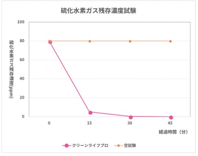 下のグラフは、アンモニアや硫化水素に対する効果実験の結果です。