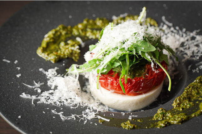 ■米油のジェノヴァソースがアクセント 「自家製セミドライトマトカプレーゼ」
