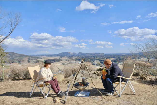 霞ヶ浦を望む展望エリアで食後の「焚火でコーヒー」はいかが