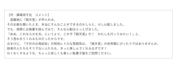銭天堂の世界観は子どものみならず、親世代をはじめとした大人も惹き込んでやみません。児童小説では珍しい切ない大人の恋愛を描いた話や、“ふしぎ駄菓子”による人の欲深さや浅ましさによる悲喜こもごもな結末などが、大人も一考させられると話題になっています。日経トレンディが発表した「2021年ヒット商品ベスト30」にもランクインするなど、その人気は児童小説の枠を大きく超えて、日本中を巻き込んだ一大ムーブメントへと発展し続けています。