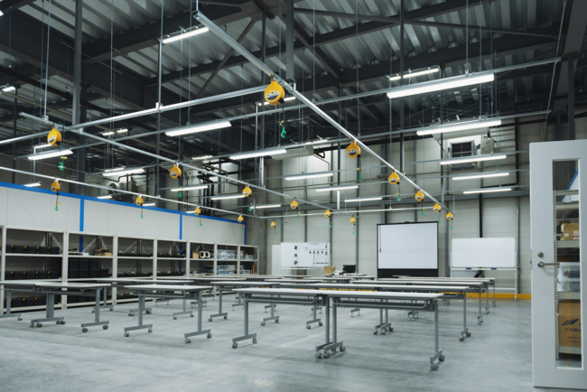 関東テクノセンターは、製造装置・産業ロボット・マテリアルハンドリング機器等の設備保全エンジニアの育成拠点として、昨年完成した最先端物流拠点「GLP ALFALINK相模原(以下、GLP相模原)」(神奈川県相模原市中央区田名字赤坂3700-1 GLP ALFALINK 相模原I)に開設。約400坪のフロアにFA装置、協働ロボット、産業用ロボットなどの実機を備え、研修講師5名体制で、1チーム最大30名の研修生を受け入れることが可能です。また、GLP相模原が運営する食堂、売店、コンビニ、カフェテリアなども併設されているほか、テニスコートやバスケットコートなどの運動施設も利用することが可能で、研修環境としても最適です。今後は立地条件を活かし、自動搬送設備等の研修環境を整えるとともに、同施設内におけるフィールドエンジニアサービス拠点としての機能強化を図る方針です。