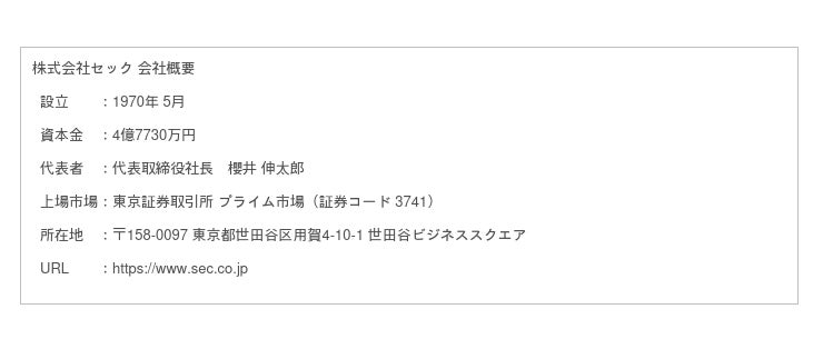問い合わせフォーム:https://www.sec.co.jp/ja/contact/contact7.html