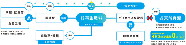 また地域で排出された廃食用油を収集し精製するサポートは、再生可能エネルギー事業・産業機器・発電機などの生産者を支える商材を取り扱う商社という枠組みにとらわれることなく、新たな技術や価値を創造する事業を行う、都市油田商事株式会社(本社:大阪市中央区、代表取締役:大木 雅史)が担っております。