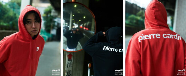 pierre cardinとのコラボレーションでは、ストリートファッションには欠かせないTシャツやパーカをはじめとする11型がラインアップ。