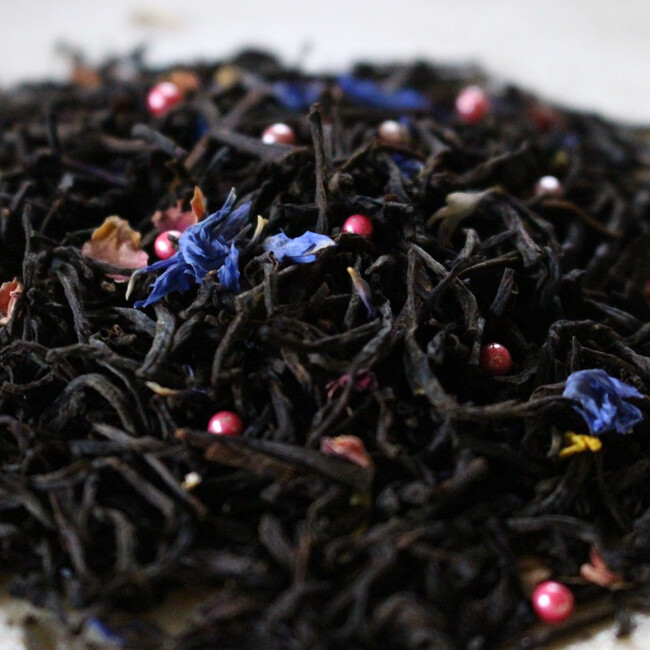 ■厳選されたスリランカ産の茶葉にシャンパンフレーバーをプラス、さらにローズレッド、コーンフラワー、桂花をブレンドし、仕上げに繊細な輝きを放つアザランを配合することで華やかなクリスマスらしさを最大限に演出。