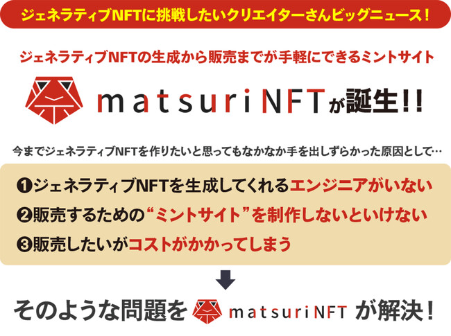 ジェネラティブNFTを生成から販売までワンストップサポートするサービスを展開する『matsuriNFT』正式ローンチ!