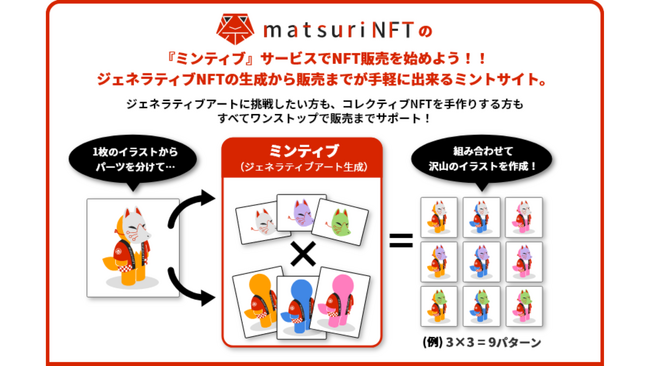 NFTクリエイターの夢を叶える!ジェネラティブNFTを生成からミントサイト構築までを手軽に。matsuriNFTの『ミンティブ』サービスで始めよう。