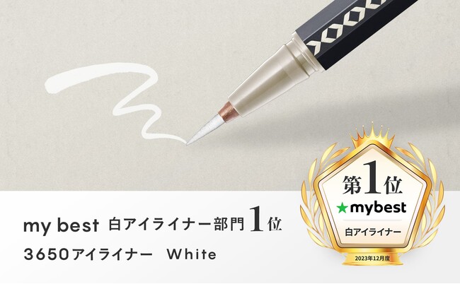 株式会社D-Neeコスメティック(所在地:神奈川県横浜市、代表:中谷大)が手掛けるコスメブランド『3650(san roku go zero)』のアイライナー「リキッドアイライナー ホワイト」が、商品比較サービスmybestによる、Amazon・楽天市場・Yahoo!ショッピング・@cosmeSHOPPINGなどで売れ筋上位の白アイライナーを比較した「白アイライナー全20商品おすすめ人気ランキング」で1位を受賞。「発色の良さ」「落ちにくさ」「使用感」「オフのしやすさ」の4つの観点から、 『3650 リキッドアイライナー ホワイト』がベストバイ商品として最もおすすめの白アイライナー1位に選出されました。