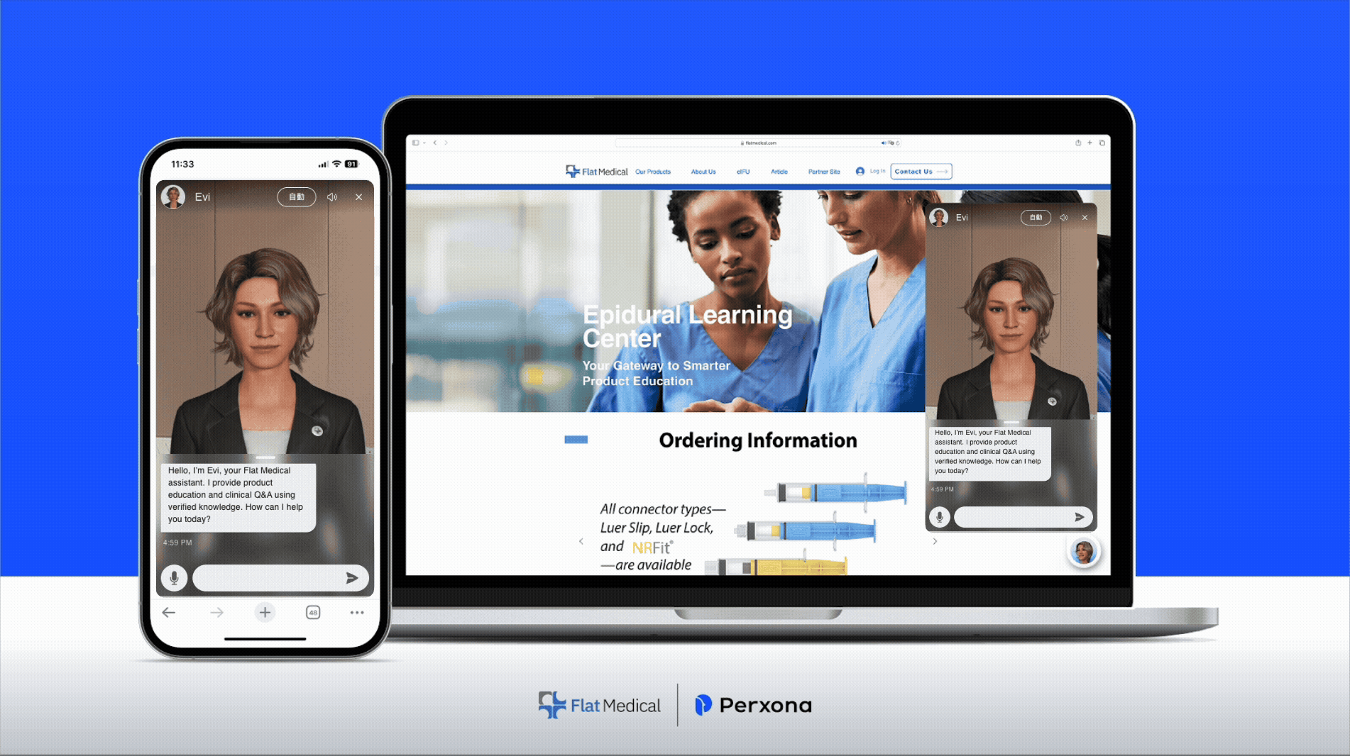 新たにFlat Medical社のWebサイト上に導入されるPerxonaのAIアバターは、顧客にリアルタイムで情報提供やサポートを行い、従来のカスタマーサポートよりも自然で効率的な体験を提供します。グローバルに多様なニーズを抱える顧客に対して、より迅速かつ的確な対応を実現します。この取り組みにより、世界中の顧客に対して“知りたい情報”へより高速にアクセスできる利便性を提供し、顧客満足度とブランド信頼性の向上を目指します。