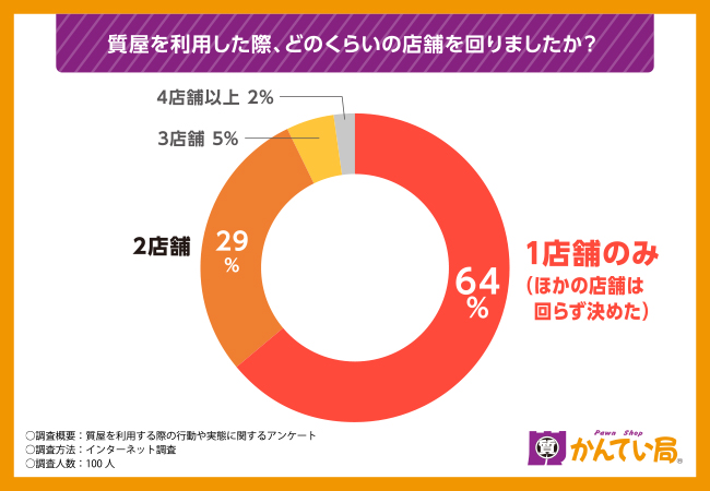はじめに「質屋を利用した際、どのくらいの店舗を回りましたか?」と質問したところ、