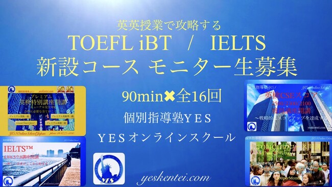 TOEFL iBT(R)/IELTS(TM) 英英授業で攻略する!グローバル英語検定対策コースモニター生募集のお知らせ 【個別指導塾YES/YESオンラインスクール】