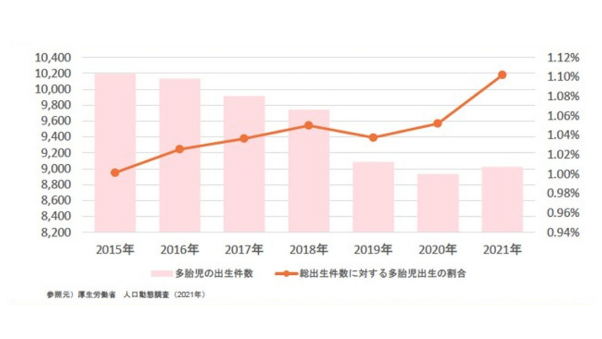 少子化が進む一方で、不妊治療技術の進歩や高齢出産の増加により多胎児(双子・三つ子など)の出生率は上昇しています。