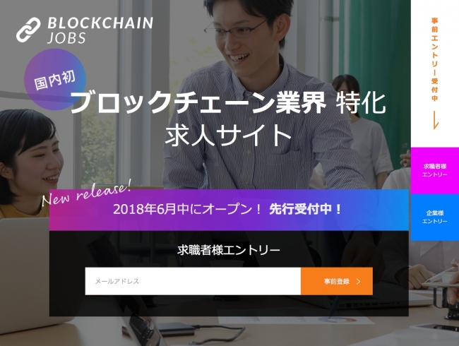 Blockchain Jobs は、2018年6月中のオープンを予定しており、この度事前受付を開始しました。求職者、企業双方の事前登録を受け付けており、事前登録者は6月に開催予定の採用イベントに優先的に参加することができます。