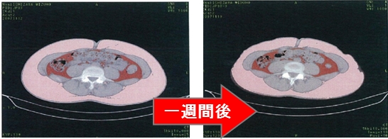 腹部周りの皮下脂肪が大幅に減少し、脂肪面積は52?のサイズダウン。