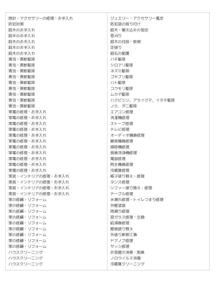 〜家電・家具の修理、庭木のお手入れ、リフォームなどのカテゴリーを追加〜