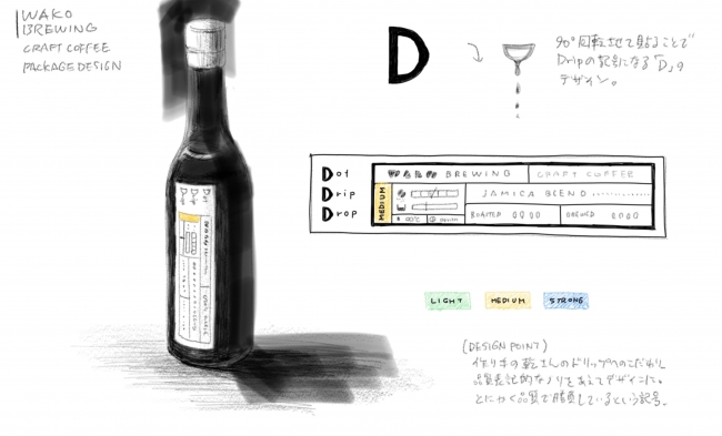 今回のプロジェクトで作るのは、"生コーヒー"という新発想で作るボトリングコーヒー。「Dot Drip Drop」です。(以下、D.D.D)