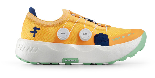 またトレイルランナーは、デュアルダイヤル BOA 構成を利用することで、BOA(R) PerformFit Wrap の特有の利点をさらに高めることができます。 この構成は、シューズのアッパーの複数のゾーンに微調節機能を提供し、各アスリートの固有の足の形状に合わせた確実なフィット感とトーボックス内のスペースの増加を実現します。これは、長距離中に自然な足の位置を維持するのに特に有益です。