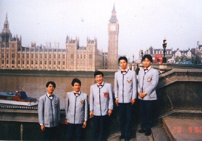 MKでは国際観光都市である京都を訪れる海外賓客の送迎や国際会議の増加を背景に、1985年に英会話が可能なドライバーによる英会話タクシーを開始、1990年には英会話資格認定試験と英会話ガイドドライバー制度を整備するとともに、ハイヤー車両の運行を専属とするファーストハイヤー部門を設置しました。より本格的に英語を学び英語での接遇を行うために選抜したドライバーを年に一度イギリスへ1ヶ月間の語学留学に派遣する「英国留学制度」が1992年に始まりました。