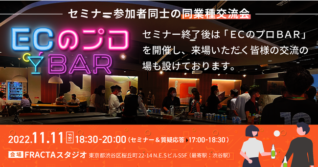 開催日 :11月11日(金) 17:00〜20:00 ※18:30〜20:00は「ECのプロBAR (交流会) 」を開催いたします。