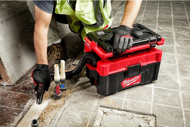 ツールボックスと組み合わせて運べ、携帯性にも優れた「M18 FUEL(TM) PACKOUT(TM) 乾湿両用集塵機」