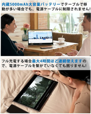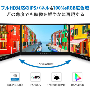 【Innocn--歳末感謝キャンペーン--20%OFF!まだ間に合う!!】外出先にでも持ち運べるタッチ対応/バッテリ内蔵の15.6型モバイルモニターはお得な割引価格で購入可能!