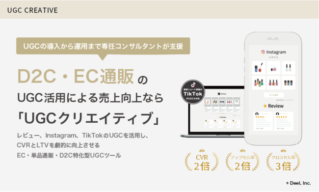 EC・単品通販・D2C特化型UGC活用ツール「UGCクリエイティブ(UGC CREATIVE)」を提供する株式会社ディール(本社:東京都中野区、代表取締役:小野瀬冬海、以下:ディール)は、このたび国内のUGC活用ツールでは初※となる、“TikTokの縦型ショート動画UGC”の生成・収集・掲載・分析・改善まで対応した新機能「TikTokの縦型動画コマースUGC活用機能」の提供を開始したことをお知らせ致します。