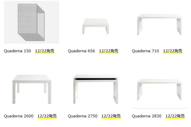 巨匠 アキッレ・カスティリオーニ、ジョエ・コロンボ、マルコ・ザヌーゾといった弊社と縁の深い著名デザイナーのプロダクトや、ラディカル運動の中心的存在だったデザイン集団 スーパースタジオの代表作でもあり、50周年記念として未発表モデルが新たに加わった「Quaderna(クアデルナ)」シリーズなど、20世紀を代表するマスターピースを幅広く展開いたします。