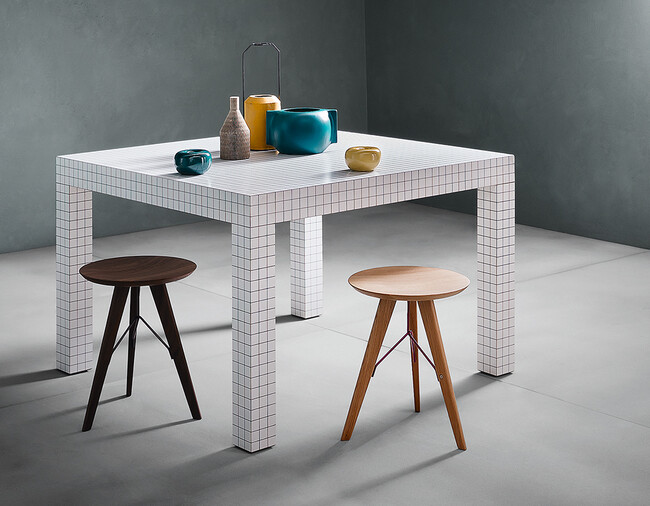 クアデルナはデザイン集団 Superstudio (1966-1978)によって、1969年から1972年にかけてデザインされたコレクションです。小さなキューブを積み上げたようなグリッド模様は、機能性から解放された純粋な“ボリューム”の発想から生まれました。ニュートラルでありながら力強い、唯一無二の存在感を放つクアデルナコレクションは、イタリアンデザインの一時代を象徴する多面的なプロダクトであり、時を経てもその魅力は衰えることがありません。