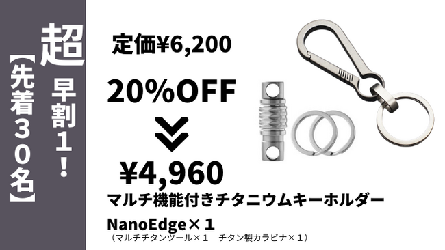 チタン製キーホルダーNao Edge:【定価】6,200円 → 4,960円