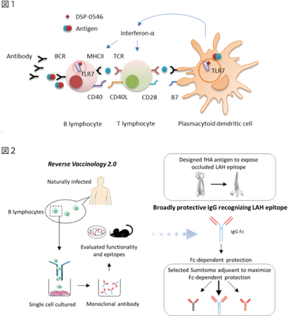 本研究の成果は、 DSP-0546LP添加製剤のコンセプト(図2)を証明する重要な非臨床研究結果であり、「ユニバーサルインフルエンザワクチン」の実用化に向けて大きな一歩となりました。早期実用化のために、引き続き研究開発を進めます。