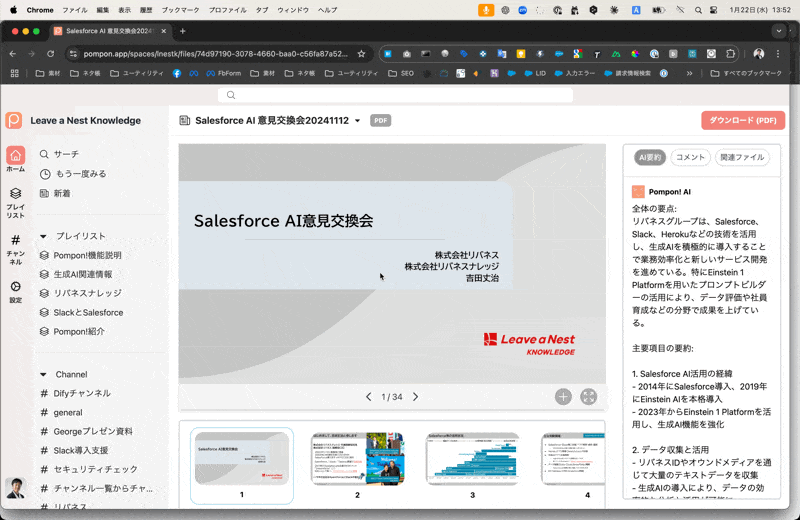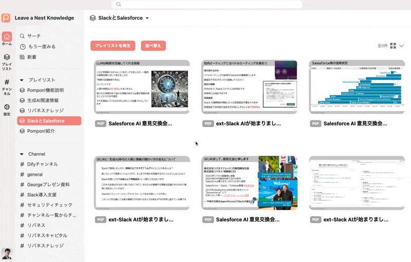 プレイリスト機能による知識の再構築:複数のファイルから必要なページをピックアップし、オリジナルのプレゼン資料やナレッジ集を簡単に作成できます。