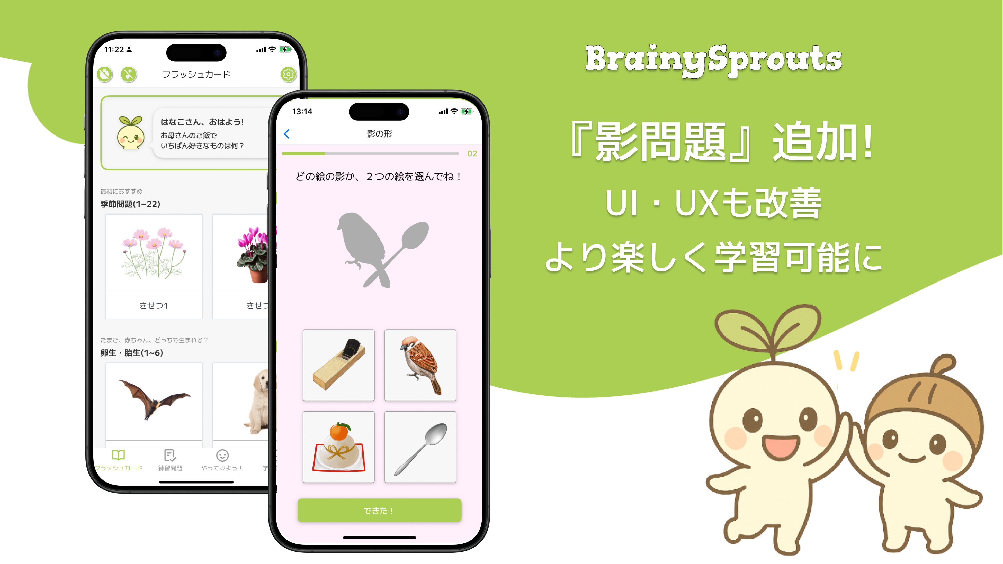 小学校受験対策&幼児向け知育アプリ『BrainySprouts』がアップデート!新たに「影(シルエット)問題」を追加