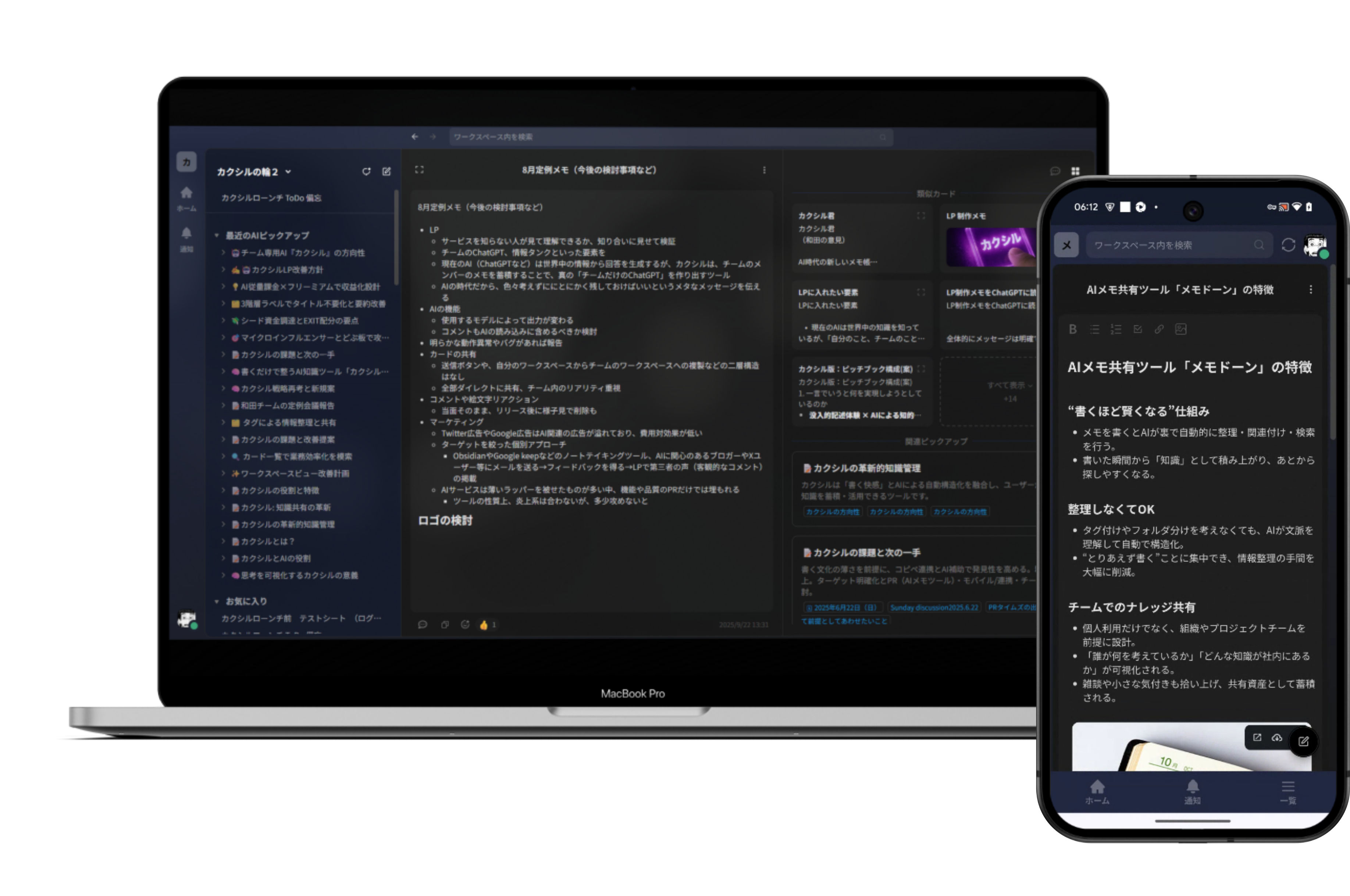 チームで使うAIメモツールの「メモドーン」がスマートフォンに対応