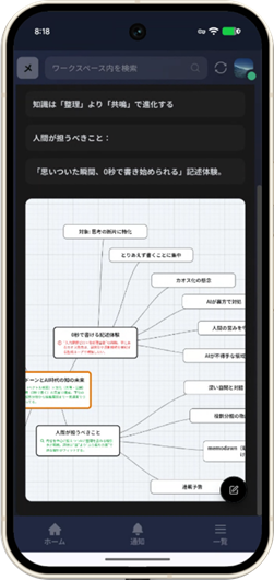 PC版と同じリッチテキストエディタを搭載し、画像添付やAIによる関連カードの提示やマインドマップ閲覧も可能。