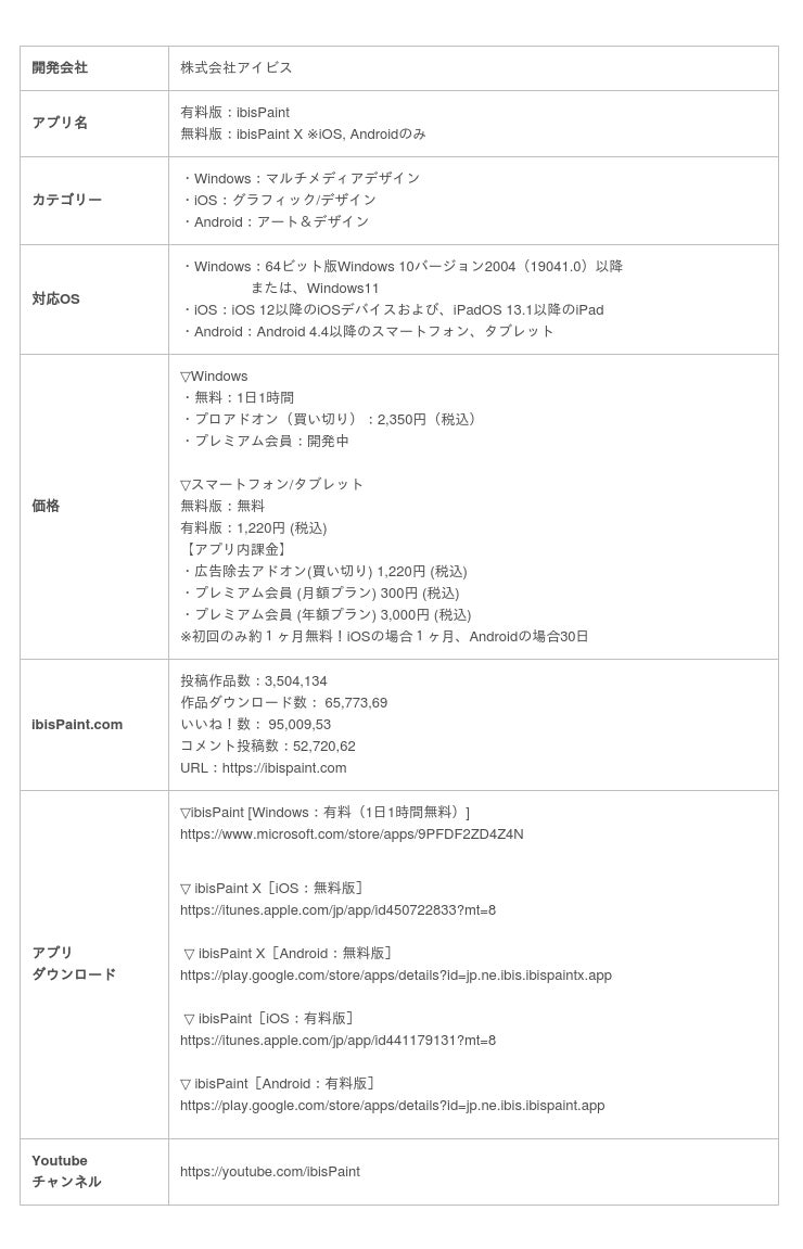 株式会社アイビス(本社:名古屋市中村区 代表者:代表取締役社長 神谷栄治)は、スマートフォン/タブレットで大人気のお絵かきSNSアプリ「ibisPaint(アイビスペイント)」のWindows版をリリースしたことをお知らせいたします。