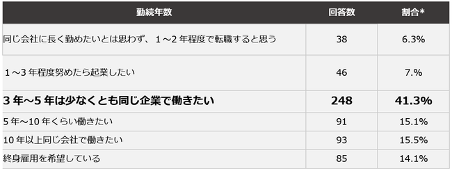 601名の学生が回答。「勤続年数と働き方の関係」は?