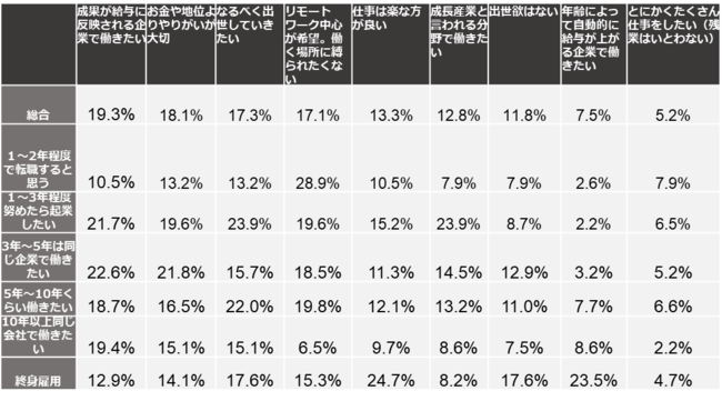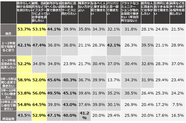 先の調査リリースでも明らかになったように、Z世代は「自分らしく働きたい」そしてワークライフバランスを重視しています。これは勤続年数に寄りません。