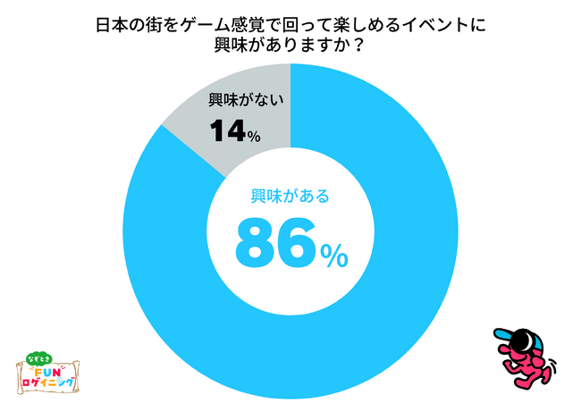 ・86%の人が街歩きイベントに興味がある。