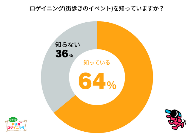 ・64%の人がロゲイニングなどの街歩きイベントを認知している。
