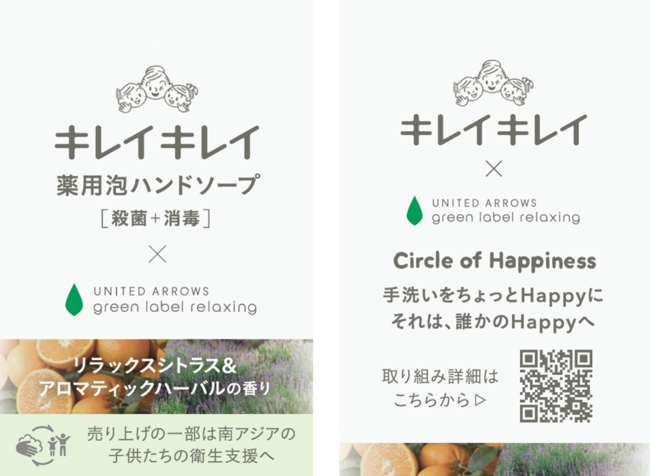 ライオン株式会社(代表取締役社長・掬川 正純)は、セレクトショップを運営する株式会社ユナイテッドアローズ(代表取締役 社長執行役員 CEO・松崎 善則)が展開するブランド「ユナイテッドアローズ グリーンレーベル リラクシング」とコラボレーションしたハンドソープ『キレイキレイ薬用泡ハンドソープ リラックスシトラス&アロマティックハーバルの香り』を、2023年4月28日(金)から全国で数量限定にて発売いたします。本商品の売上げの一部は独立行政法人国際協力機構 (以下、JICA)を通して寄付され、南アジア(バングラデシュ)の子供たちの衛生支援に役立てられます。